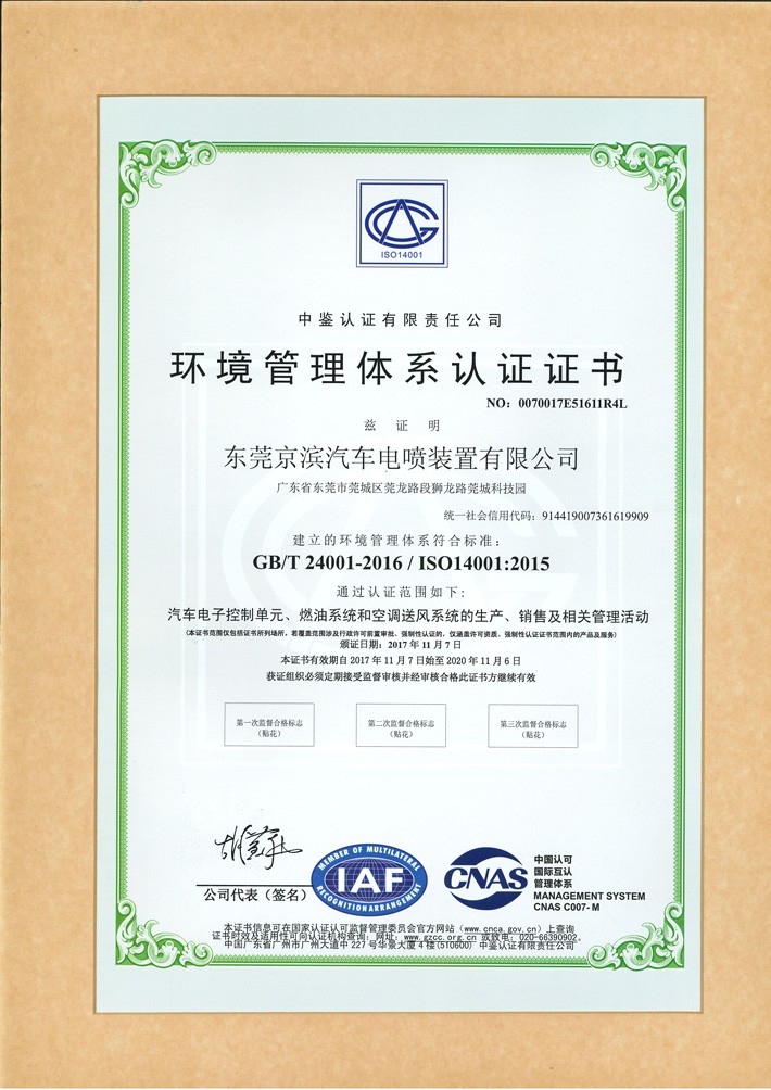 我司在2004年取得ISO9001品质认证,2005年取得ISO14001环境认证,2007年取得IS16949认证,2017年取得IATF16949认证。